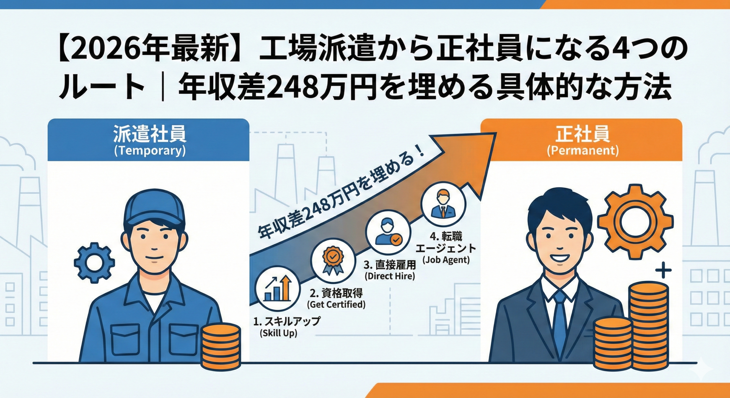 【2026年最新】工場派遣から正社員になる4つのルート|年収差248万円を埋める具体的な方法